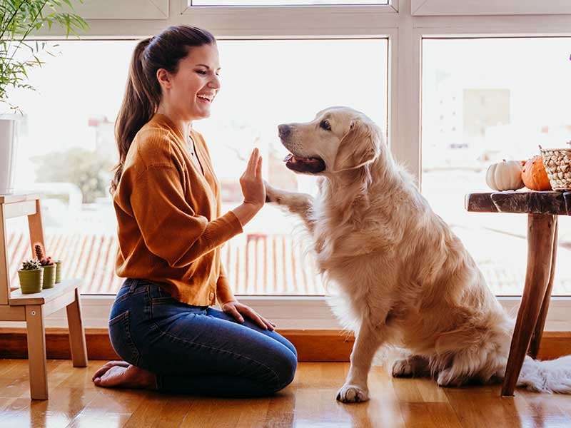 - Barking, chewing, jumping: Ignore unwanted behavior and reward correct behavior.